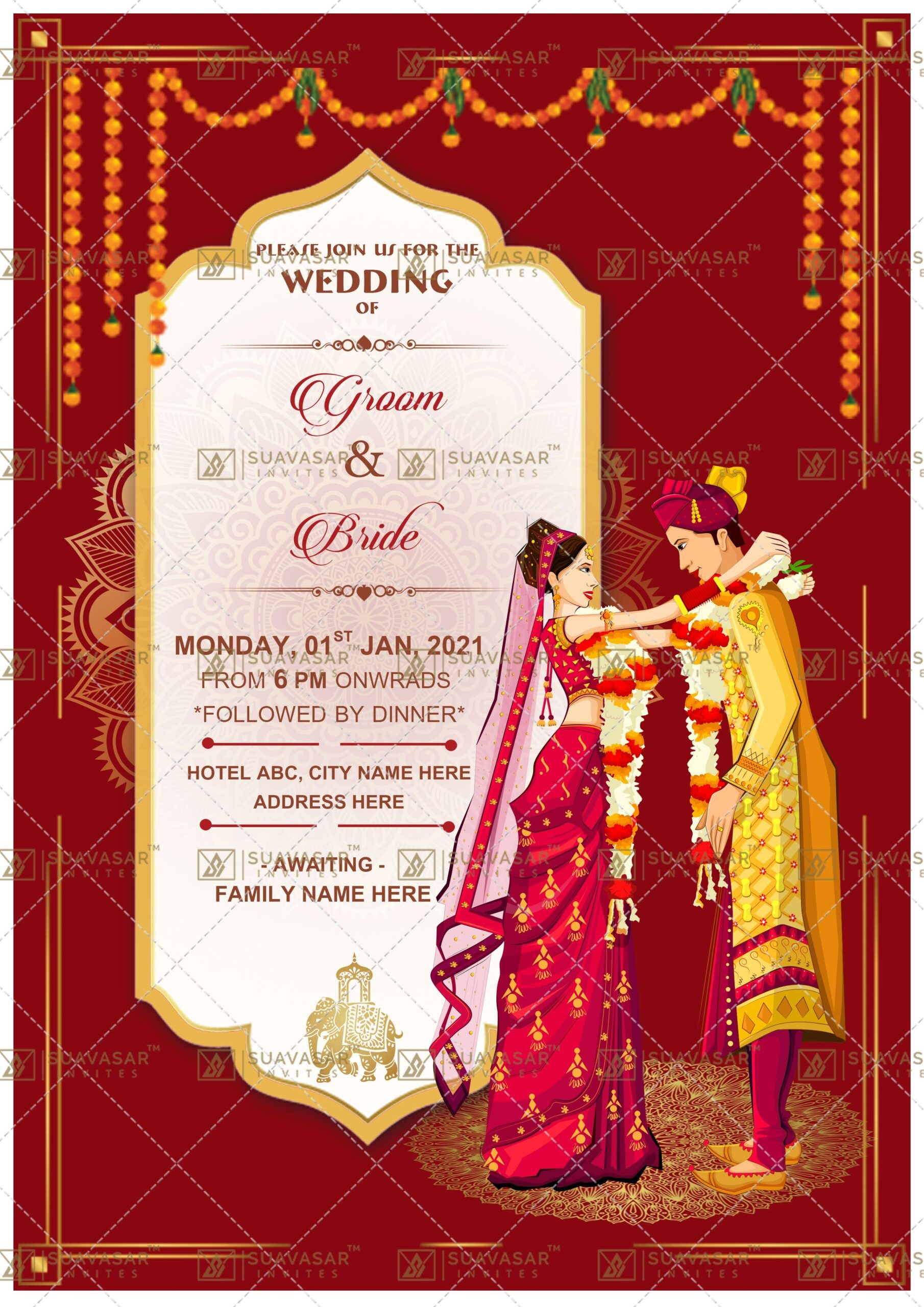 These digital templates offer a variety of designs inspired by Indian culture, including intricate patterns, vibrant colors, and traditional motifs. Couples can easily personalize these templates with their own details and preferences, making it a hassle-free option for inviting guests to their wedding.