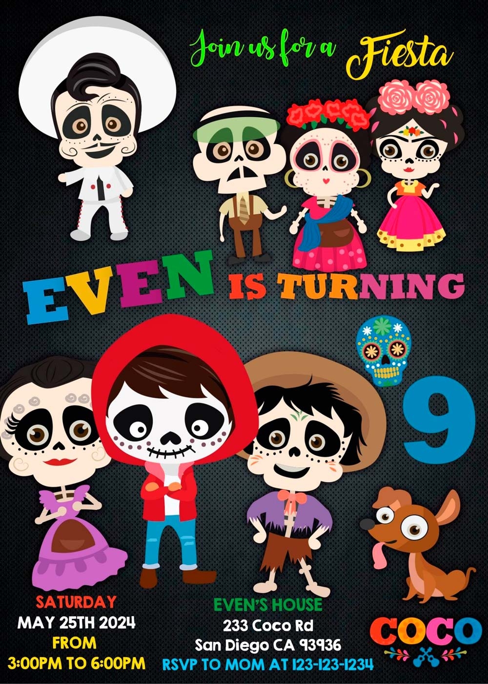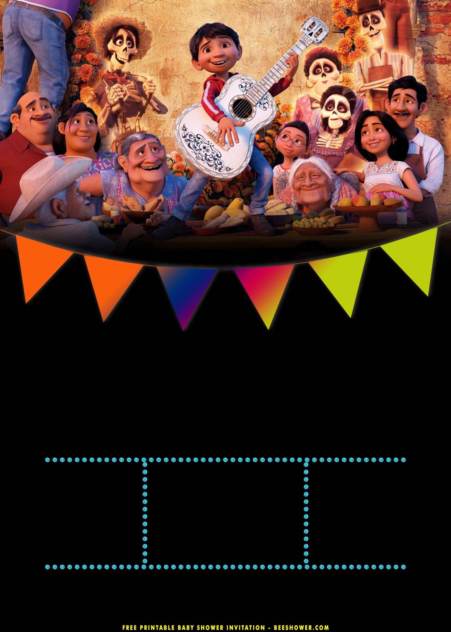 So, why settle for ordinary invitations when you can have something truly special? Make your Disney Coco themed party stand out with our invitation template. Your guests will be delighted to receive such a unique and festive invitation, setting the perfect tone for a memorable celebration.