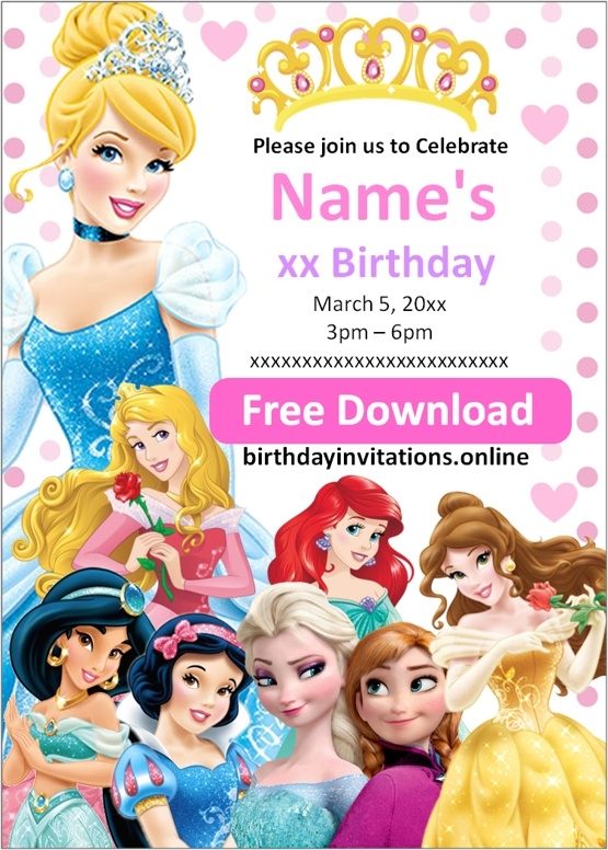 FREE DISNEY PRINCESS Birthday Invitations Template Online