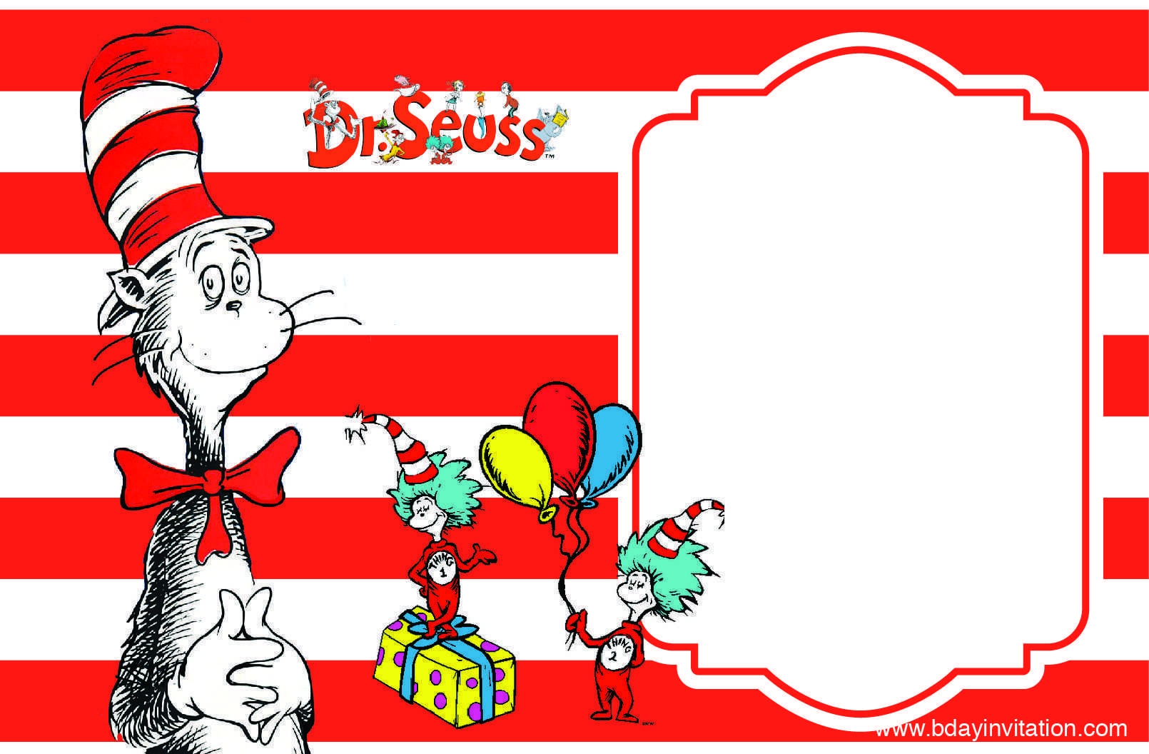 So why settle for boring and generic birthday invitations when you can have a Dr. Seuss themed invitation that will make your party stand out? Get started today and create a memorable and fun-filled celebration with our Dr. Seuss birthday invitation templates. Your guests will surely be impressed and excited to join in the festivities!