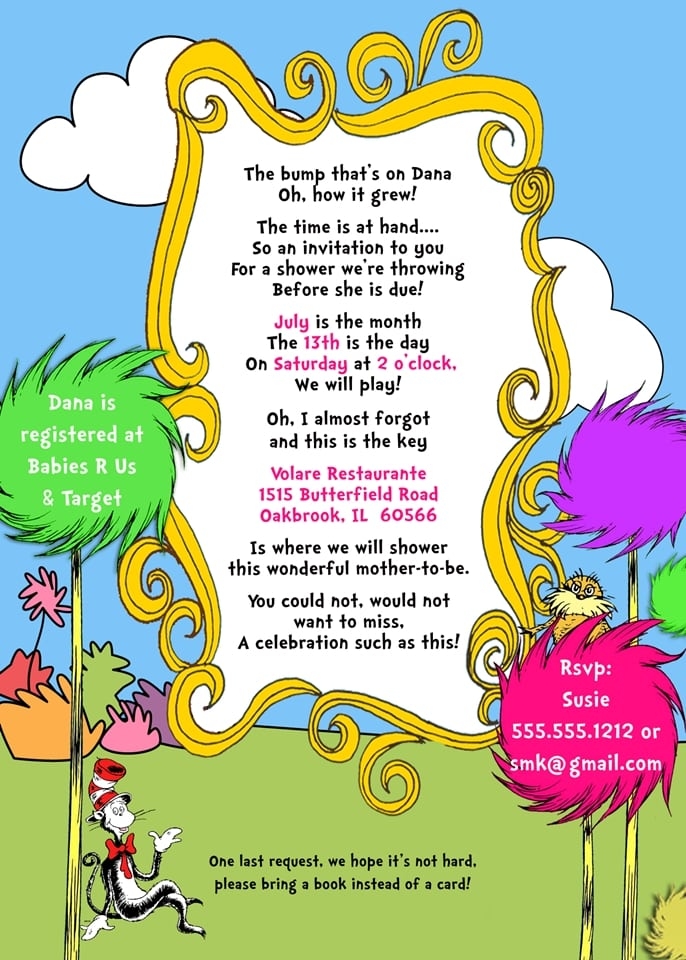 When choosing a Dr. Seuss invitation template, consider the theme of your event and the age group of your guests. For a children’s birthday party, you may want to choose a template that appeals to young children with bold colors and whimsical illustrations. For a more sophisticated event, such as a baby shower or graduation party, you may opt for a template with a more subtle color palette and elegant design elements.