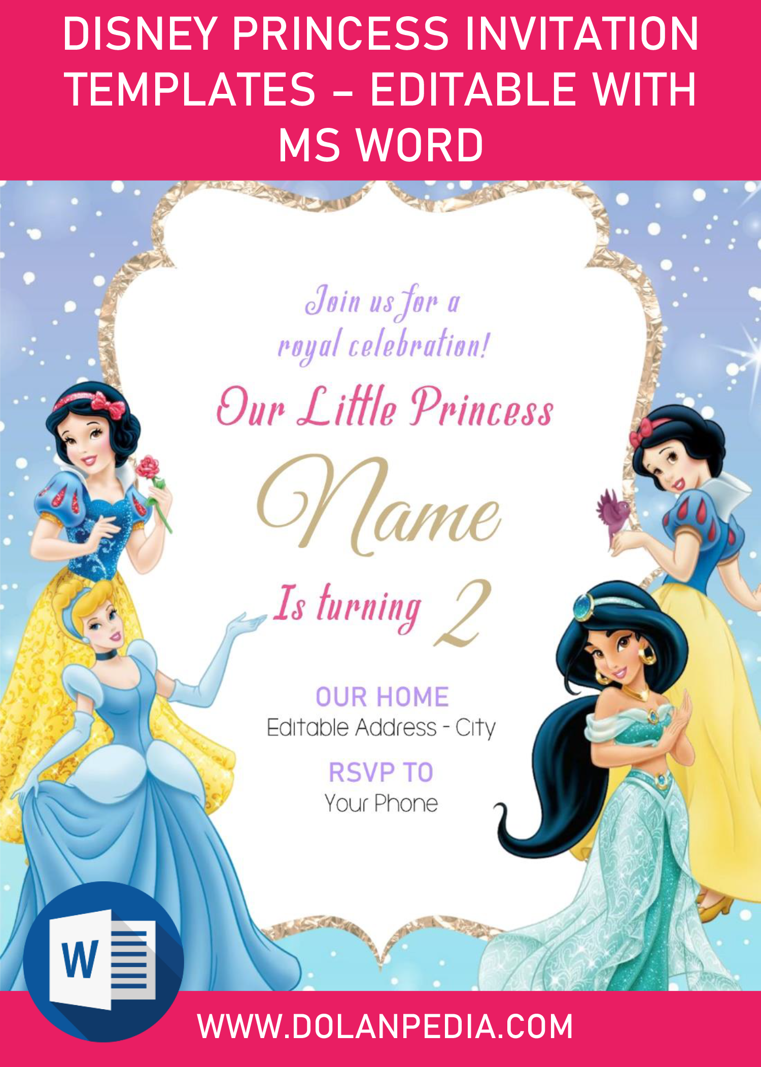 Don’t settle for a generic invitation when you can easily create a personalized Disney Princess invitation that will make your event truly special. With our editable templates, you can add your own creative touch and make your party stand out from the rest. Download your free Disney Princess invitation template today and start planning a magical celebration that your guests will never forget!