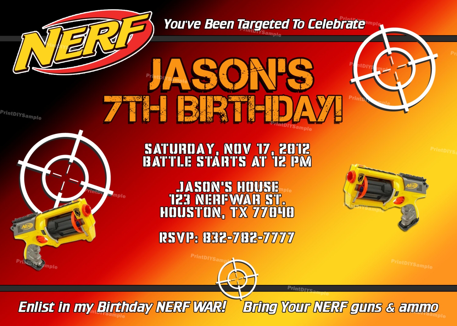 Download our free editable Nerf Gun party invitations template now and get ready to have a blast at your next party!