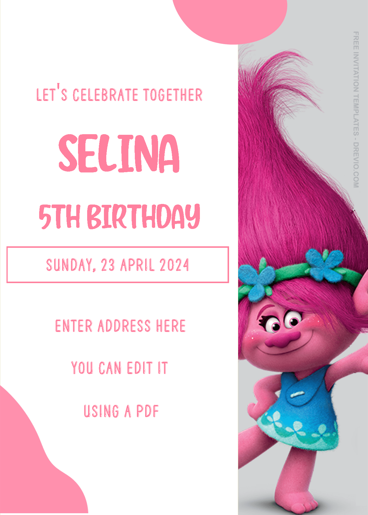 Another advantage of using editable trolls invitation templates is that they are cost-effective. Instead of hiring a designer to create custom invitations for you, you can save money by using a template and doing it yourself. This way, you can allocate your budget to other aspects of your party, such as decorations, food, and entertainment.