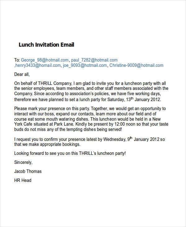 Lastly, be sure to proofread your email lunch invitation template before sending it out to ensure there are no errors or typos. You want to make a good impression on your guests and a well-crafted invitation can help set the tone for a successful lunch event.