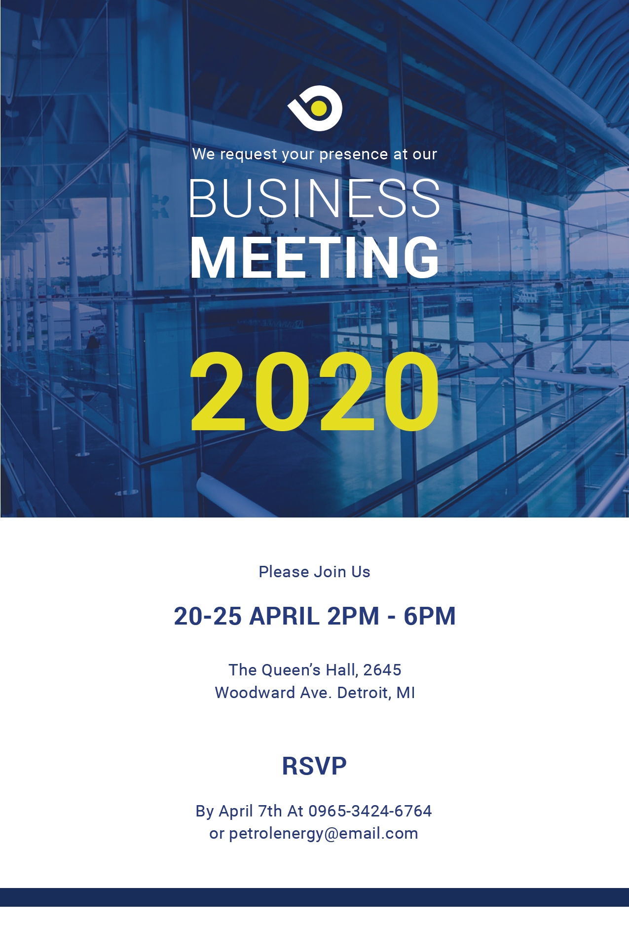 We are pleased to invite you to attend an important business meeting on [date] at [time]. The meeting will take place at [location].