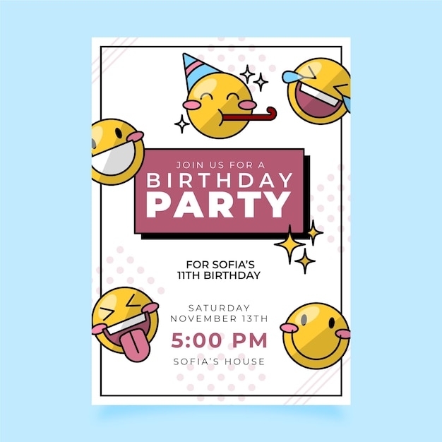 Free Vector Cartoon Emoji Birthday Invitation Template
