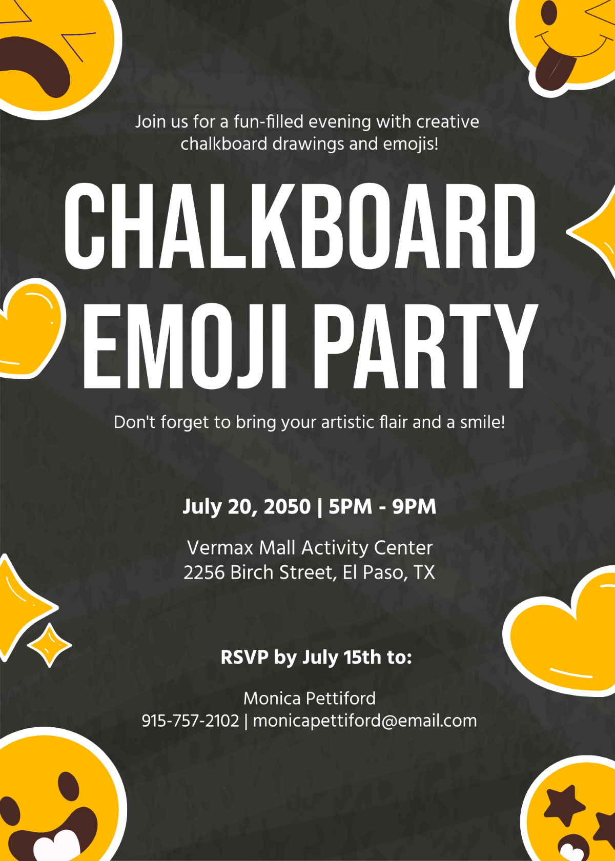 Emoji template invitations are a popular choice for a variety of events, from birthday parties to baby showers to weddings. With a wide range of emojis to choose from, you can easily customize your invitation to match the theme and tone of your event. Whether you want to convey excitement, love, or just a sense of fun, there’s an emoji for every occasion!