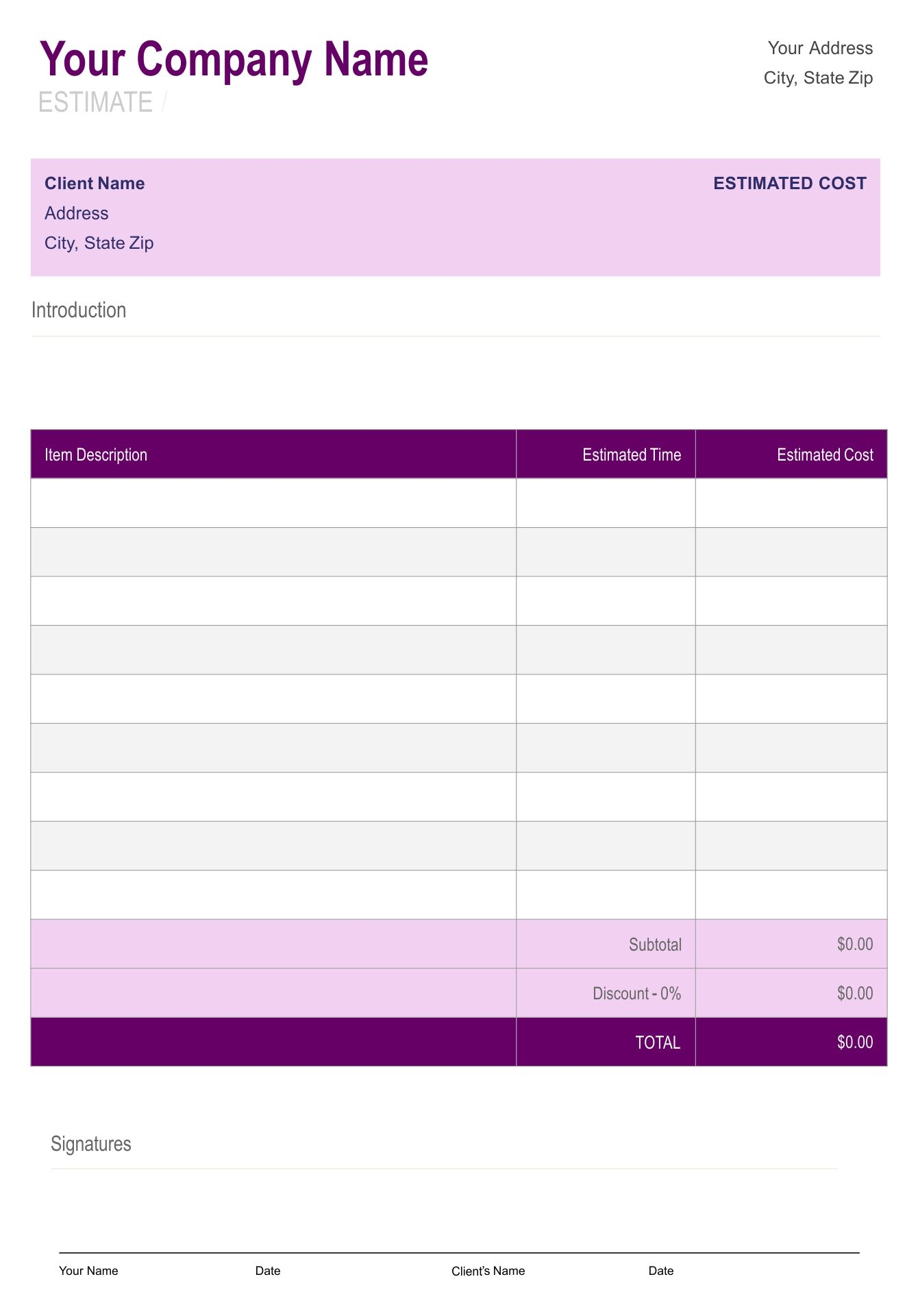 In the world of business, providing accurate estimates is crucial for ensuring transparency and building trust with clients. However, creating estimates from scratch can be time-consuming and tedious. That’s where free printable estimate templates come in handy. These templates not only save time but also help in presenting a professional and organized estimate to clients.