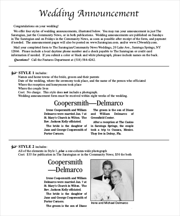 Free Printable Wedding Announcement Templates