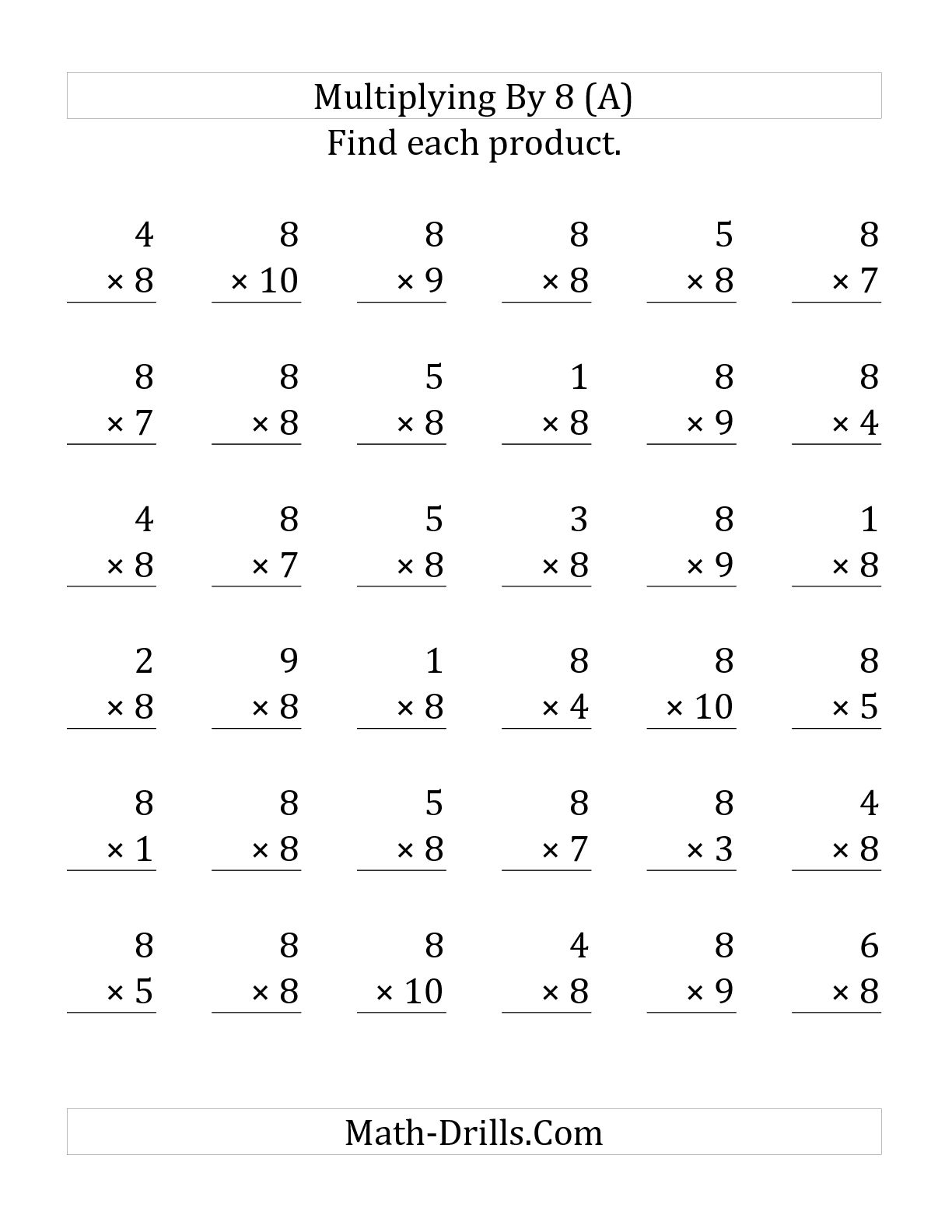 Multiplication is an important mathematical operation that students need to master. One way to practice and improve multiplication skills is by using worksheets. These worksheets provide students with the opportunity to practice their multiplication of 8 in a structured and organized way.
