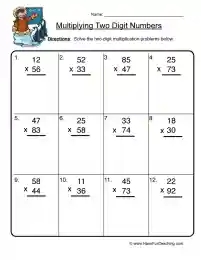 Double digit multiplication worksheets are designed to help students understand the process of multiplying numbers with two digits. These worksheets typically contain a series of problems where students are required to multiply a two-digit number by another two-digit number. By solving these problems repeatedly, students can enhance their multiplication skills and build confidence in tackling more complex mathematical problems.