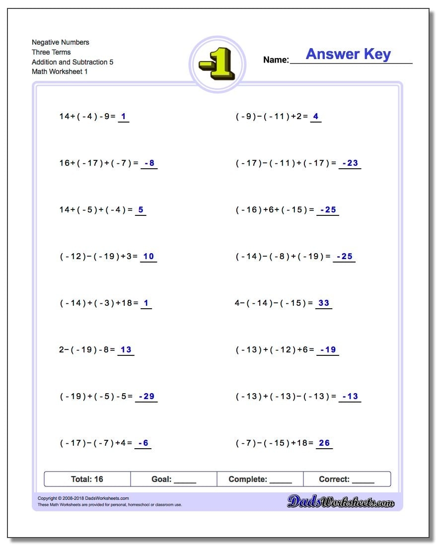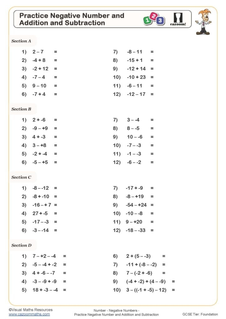 These worksheets provide students with the opportunity to practice working with negative numbers in a structured and guided manner. By completing these worksheets, students can strengthen their understanding of how negative numbers behave in mathematical operations and improve their overall proficiency in handling them.