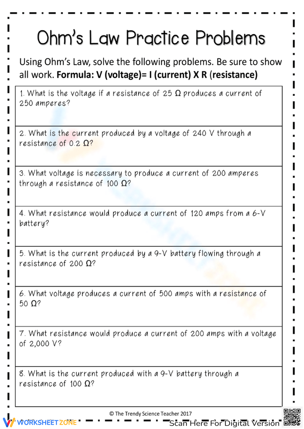 Ohm’s Law practice worksheets can also help students prepare for exams or assessments that require them to demonstrate their understanding of basic electrical principles. By working through these worksheets, students can identify any areas where they may need additional practice or review, allowing them to improve their skills and confidence in the subject.