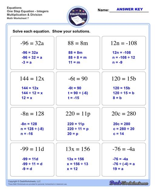 One step equation worksheets are a valuable tool for students to practice solving equations with only one operation involved. These worksheets typically include a variety of one-step equations that require students to perform addition, subtraction, multiplication, or division to find the solution. By practicing with these worksheets, students can improve their understanding of basic algebraic concepts and develop their problem-solving skills.