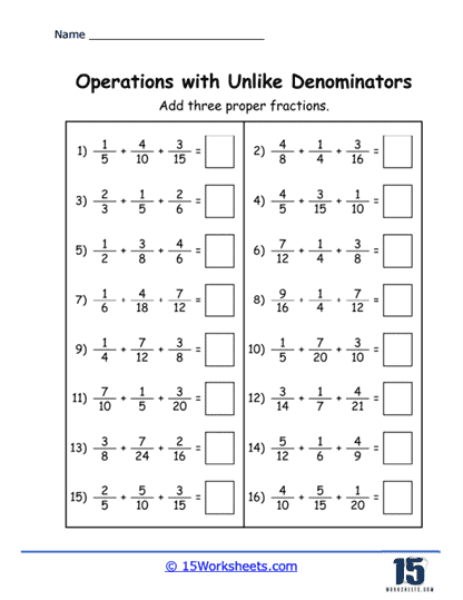 These worksheets typically contain a mix of problems that require students to simplify fractions, find common denominators, and apply the rules of operations with fractions. By practicing these problems, students can become more confident in their ability to work with fractions and develop a deeper understanding of how fractions work.
