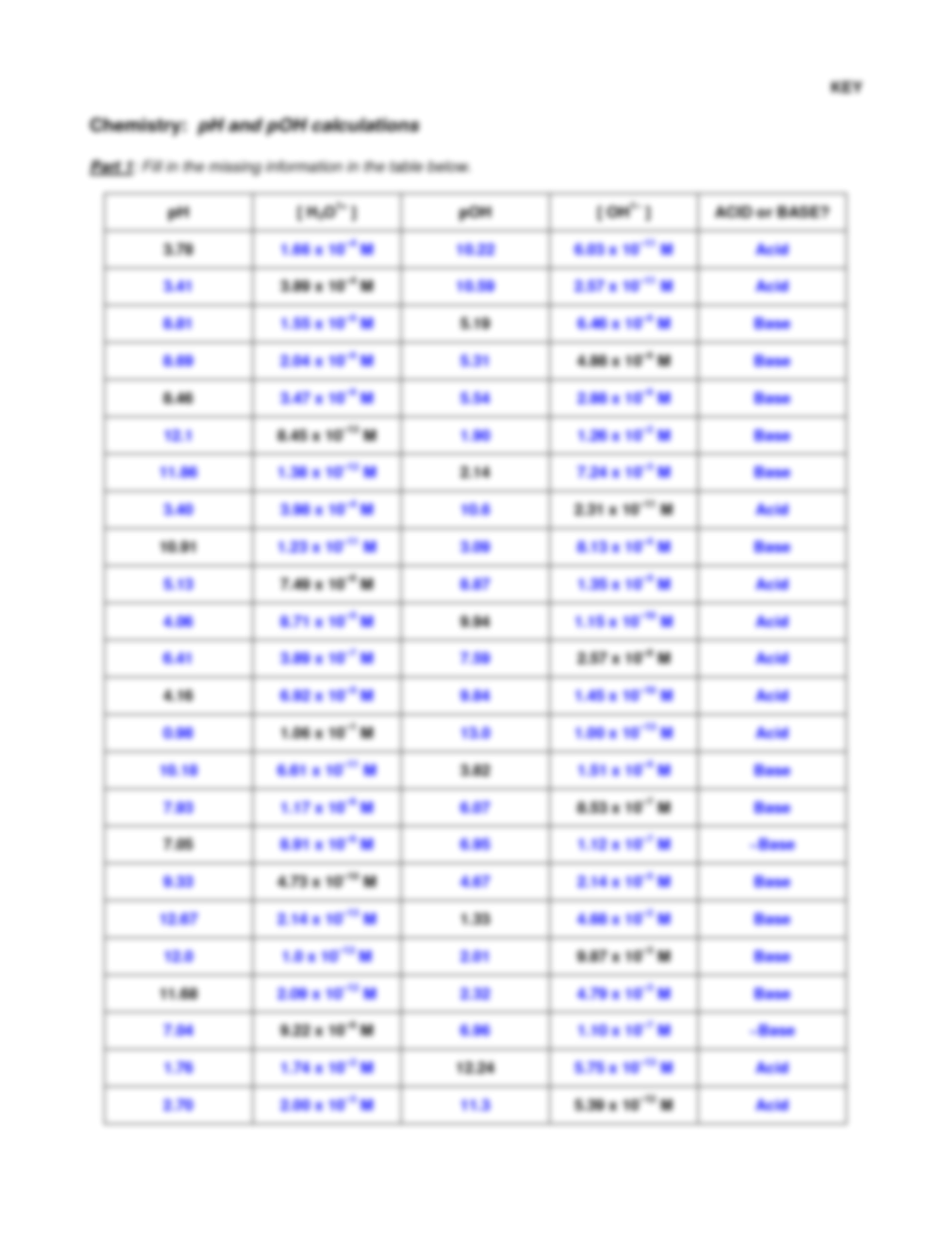 By practicing these types of problems on a pH and pOH calculations worksheet, students can improve their understanding of the concepts and formulas involved. They can also develop their problem-solving skills and gain confidence in applying these calculations to real-world scenarios.
