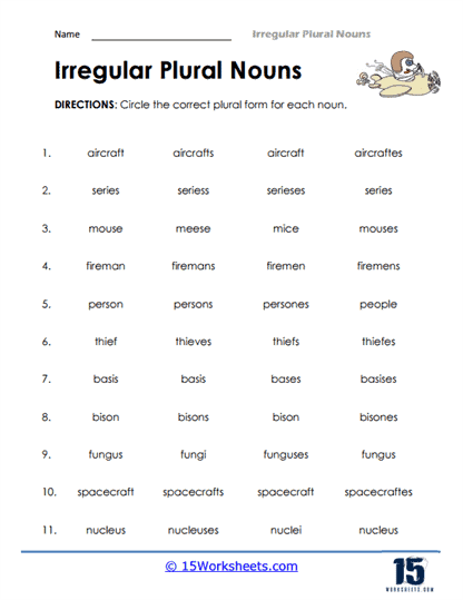 Additionally, plural noun worksheets may include activities that require students to choose the correct plural form of a noun from a list of options, helping them reinforce their understanding of plural noun rules through multiple-choice questions. These types of exercises can be beneficial for assessing students’ comprehension and retention of plural noun concepts.