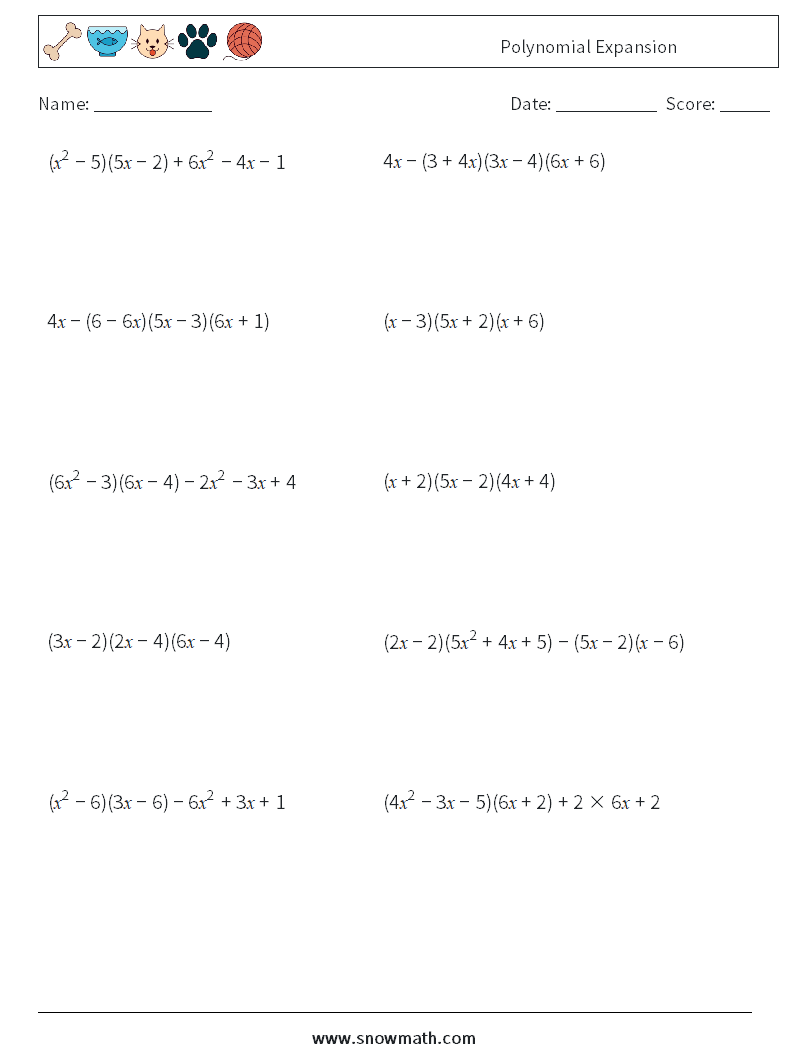 One common type of problem found in polynomial worksheets is simplifying polynomial expressions. Students are required to combine like terms, distribute, and apply the rules of exponents to simplify the given expressions. This helps students develop their skills in manipulating polynomials and understanding the relationships between terms.