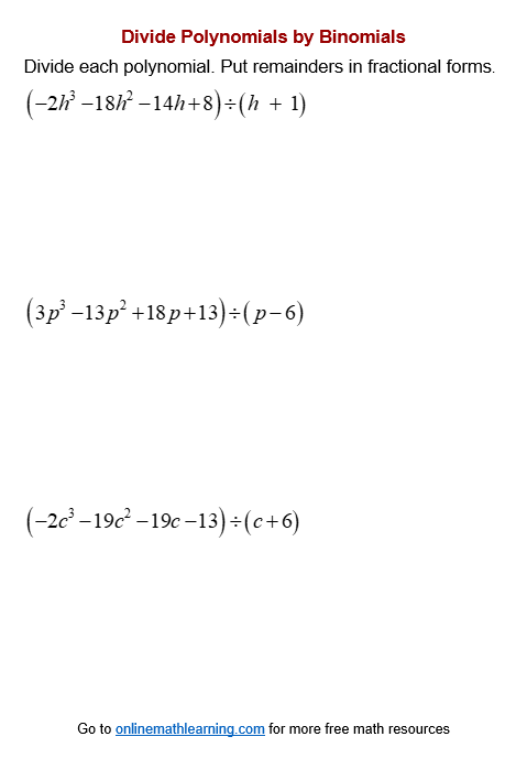 Overall, polynomial worksheets are a valuable resource for students to practice and reinforce their understanding of polynomials. They provide a structured approach to learning and mastering the concepts related to polynomials, helping students develop their problem-solving skills and algebraic abilities. By working through these worksheets, students can build a solid foundation in algebra and improve their overall math proficiency.
