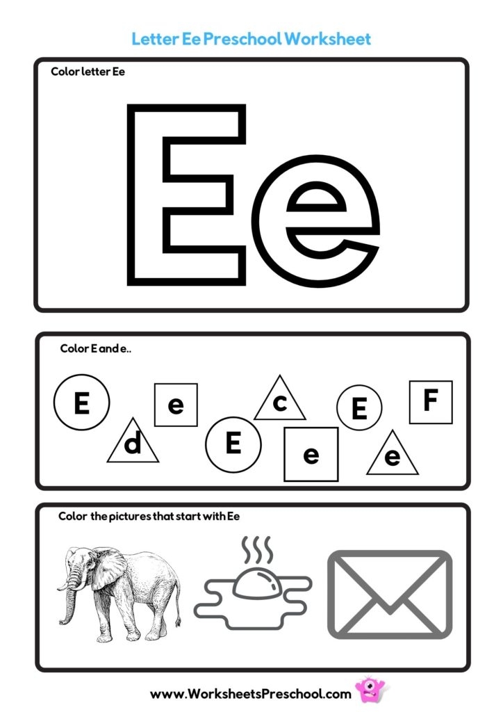 Some worksheets may also include a section where children can practice writing the letter E on their own. This allows preschoolers to apply what they have learned from tracing and matching activities and gives them the opportunity to practice forming the letter independently.