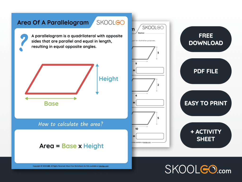 Students can use the worksheet to practice calculating the area of a parallelogram using the formula A = base x height. By working through the problems on the worksheet, students can develop their understanding of how to apply this formula and solve problems related to the area of a parallelogram. This hands-on practice can help reinforce the concepts taught in class and improve students’ problem-solving skills.