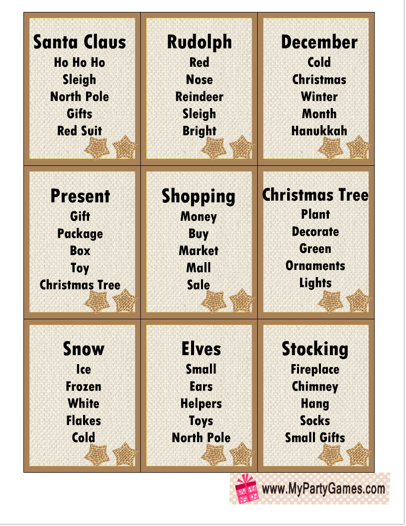 Printable Christmas Taboo cards are a convenient and easy way to bring this game to your holiday gatherings. You can simply print out the cards, cut them out, and you’re ready to play. It’s a cost-effective option that allows you to customize the game with your own words or phrases, making it even more personal and enjoyable.