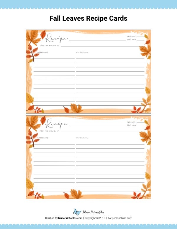 In conclusion, printable fall recipe cards are a useful and charming addition to any kitchen. With their festive designs and customizable features, these cards can help you stay organized and inspired during the autumn season. Whether you’re baking sweet treats or whipping up savory dishes, having a collection of fall recipe cards on hand can make meal planning a breeze. So why not print out a few of your favorite recipes today and start creating your own set of delightful fall recipe cards?