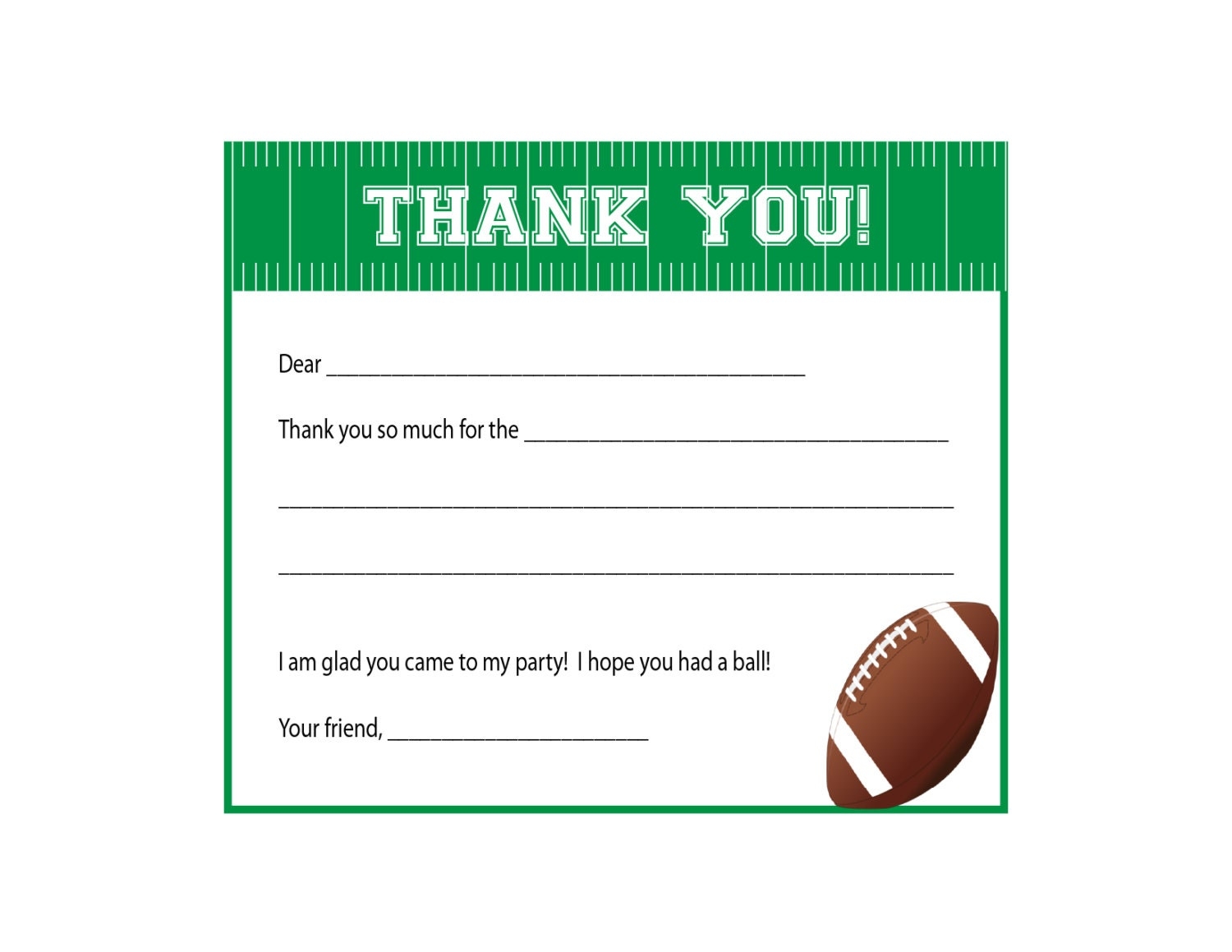 Printable football thank you cards are also convenient and cost-effective. Instead of having to run to the store to buy a card, you can simply print one out from the comfort of your own home. This saves time and money, making it easier to send out thank you cards to everyone who deserves one.