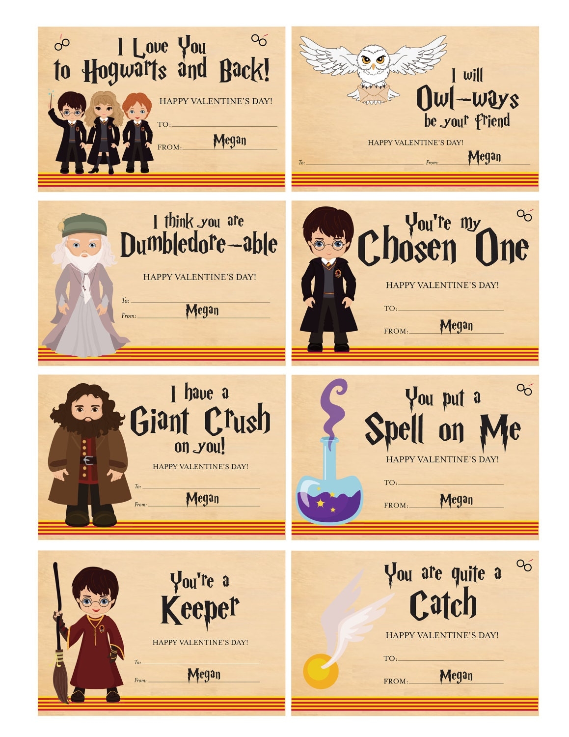 Whether you’re a die-hard Harry Potter fan or just looking for a unique and creative way to celebrate Valentine’s Day, these printable cards are sure to delight anyone who receives them. So don’t wait any longer – spread some magic and love with these enchanting Harry Potter Valentines cards!