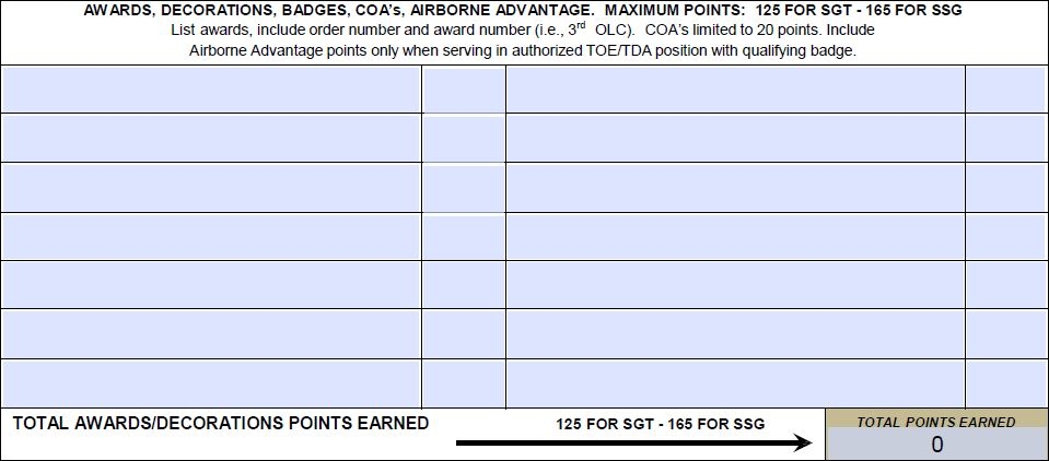 In addition to serving as a tool for self-assessment, the promotion points worksheet also serves as a reference for promotion boards during the selection process. Promotion boards use the information provided on the worksheet to evaluate candidates’ qualifications and determine their readiness for advancement. Therefore, it is essential for service members to ensure that their worksheet is complete, up-to-date, and accurately reflects their accomplishments and qualifications.