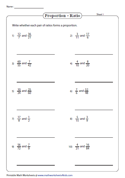 Proportion Math Worksheets
