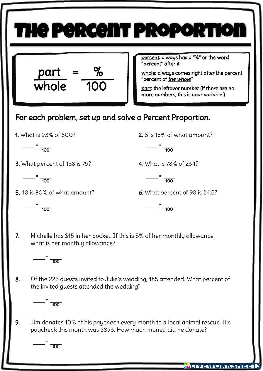 Proportion math worksheets are essential tools in helping students understand the concept of proportions. These worksheets provide practice problems that allow students to apply their knowledge of ratios and proportions in various real-world scenarios. By working through these worksheets, students can improve their problem-solving skills and develop a deeper understanding of how proportions work.
