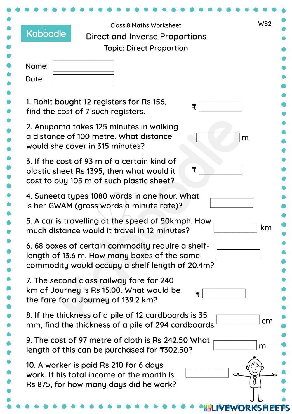 Another type of proportion problem that students may encounter on worksheets is solving word problems involving proportions. These problems require students to apply their knowledge of proportions to real-life scenarios, such as calculating the cost of items or determining the distance between two points. By solving these problems, students can see the practical applications of proportions and improve their problem-solving skills.