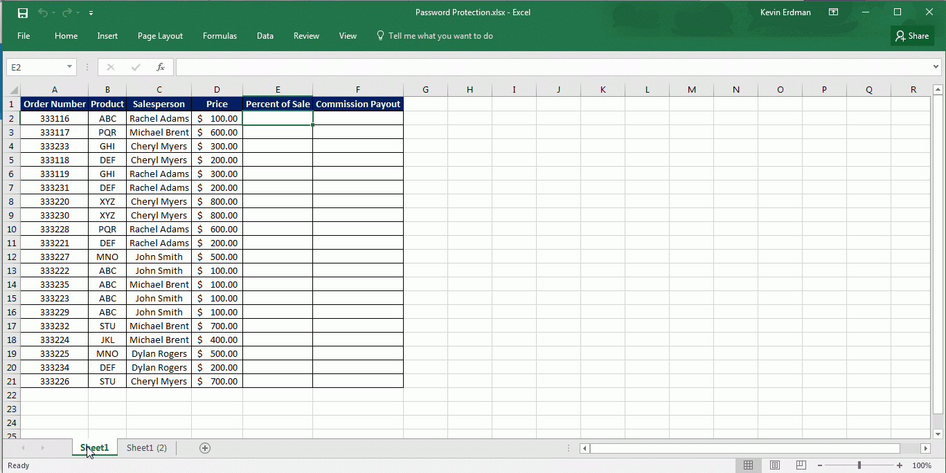 Protecting a Worksheet in Excel