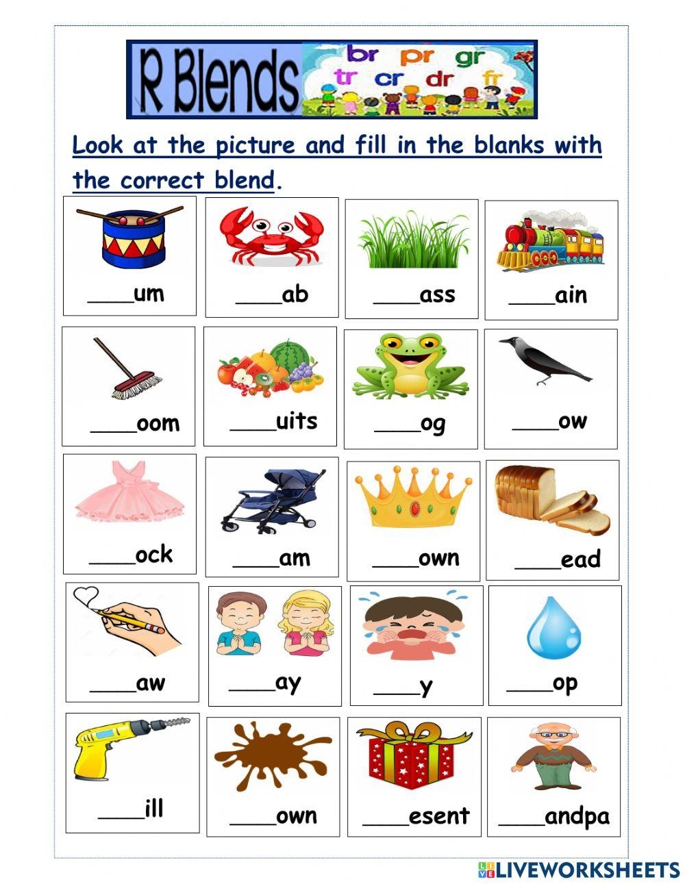 Worksheets focusing on r blends can be designed to help students recognize, spell, and use words with these blends in sentences. They can also be tailored to different learning levels, making them suitable for both beginners and more advanced learners. By engaging with these worksheets, students can improve their phonics skills and expand their vocabulary.