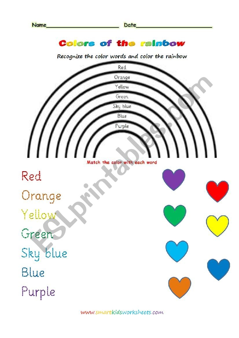 The rainbow colours worksheet typically consists of a black and white outline of a rainbow with each section labeled with a color. Children can use crayons, markers, or colored pencils to fill in each section with the corresponding color. This hands-on activity not only helps them learn about colors but also improves their hand-eye coordination and creativity.