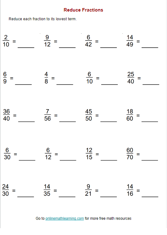 5. Progress Monitoring: Teachers can use worksheets to assess students’ progress in reducing fractions. By analyzing the completed worksheets, educators can identify areas where students may need additional support and tailor their instruction accordingly.