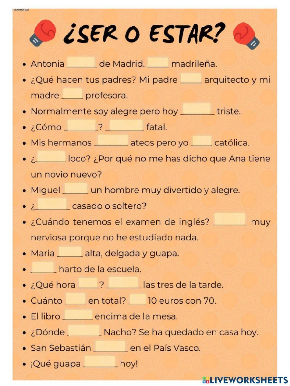 One way to help students practice using “ser” and “estar” correctly is by providing a worksheet with various exercises. The worksheet can include fill-in-the-blank sentences, matching exercises, or even short answer questions. By engaging with different types of activities, students can reinforce their understanding of when to use each verb and gain confidence in their language skills.