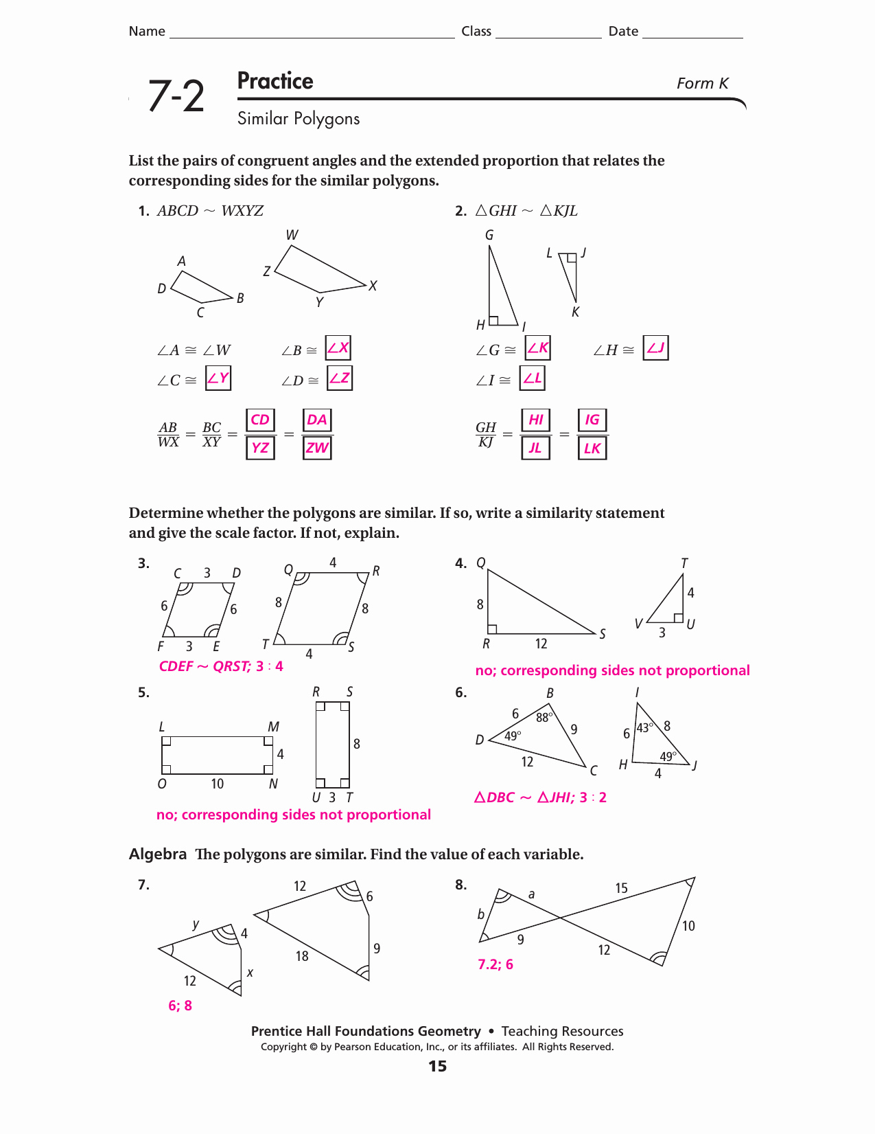 Similar polygons worksheets are a valuable tool for students to practice identifying and working with similar shapes. These worksheets typically include a variety of problems that require students to identify corresponding angles and sides of similar polygons, as well as calculate scale factors and missing side lengths. By working through these problems, students can strengthen their understanding of similar polygons and improve their problem-solving skills.