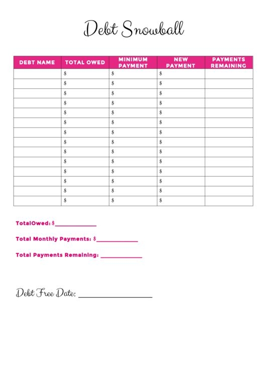 A snowball debt worksheet is a simple yet powerful tool that allows you to list all your debts in one place. You can include information such as the total amount owed, interest rates, minimum monthly payments, and due dates. By having a clear overview of your debts, you can make informed decisions about how to allocate your resources effectively.
