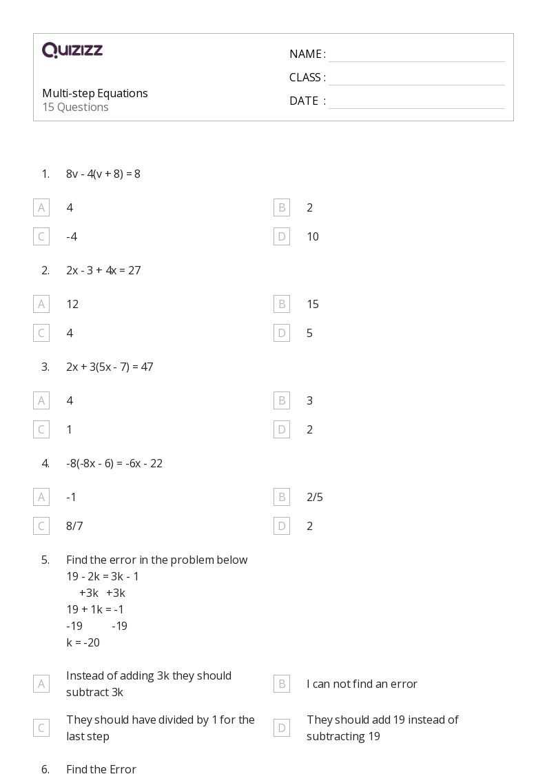 Another advantage of solving multi step equations worksheets with answers is that they offer a structured approach to practicing different types of equations. The worksheets typically include a variety of problems, ranging from basic to more complex equations. This allows you to gradually build your skills and confidence as you work through each problem. Additionally, having the answers provided allows you to self-assess your work and adjust your approach as needed.