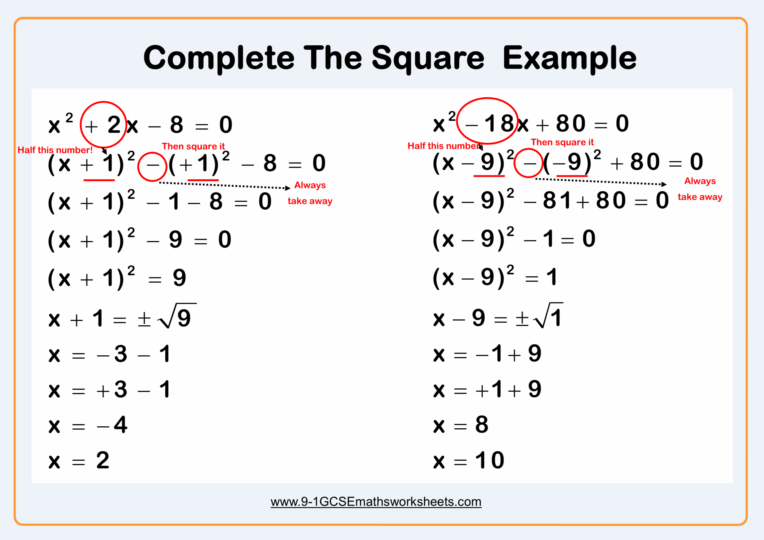 Solving Quadratics Worksheet