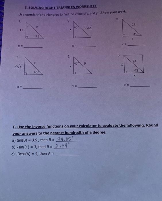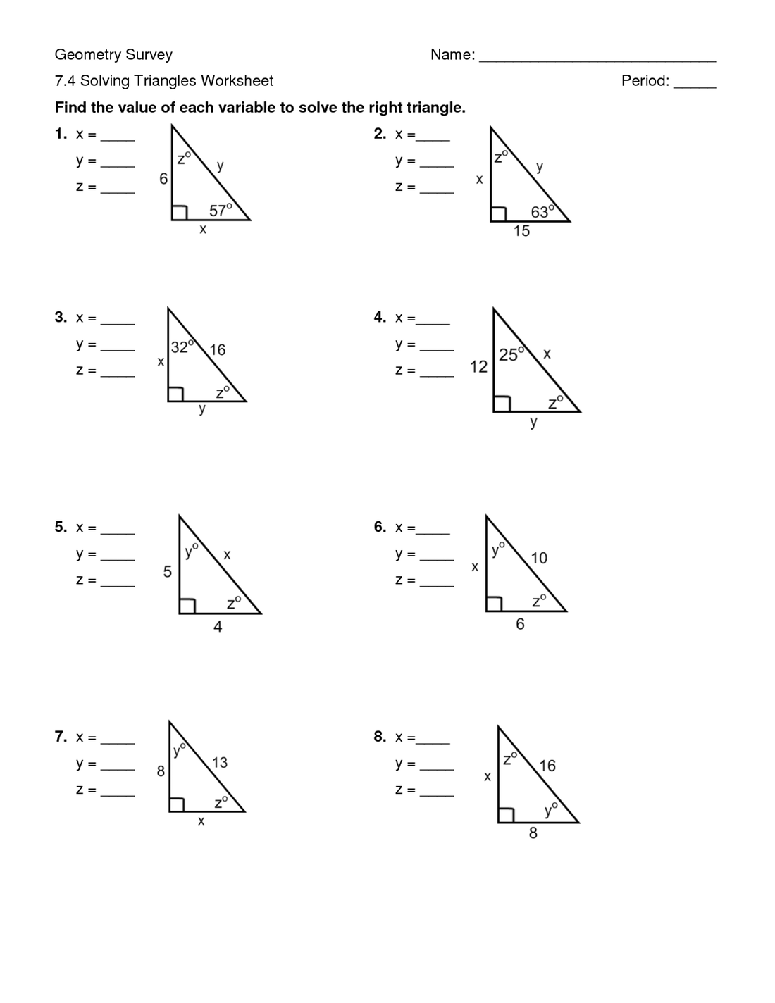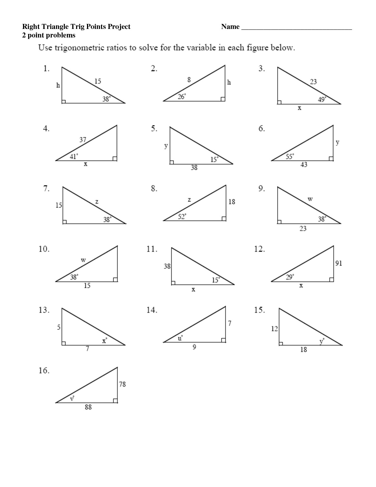 Solving Right Triangles Worksheet