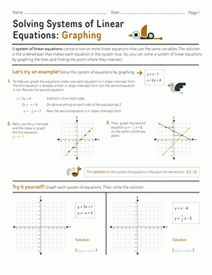 Graphing worksheets provide students with practice in solving systems of equations by graphing. These worksheets typically contain multiple sets of equations for students to graph and find the points of intersection. This hands-on approach helps students understand the concept of solving systems of equations visually.