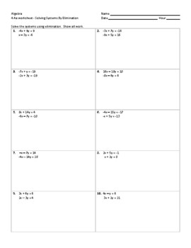 Elimination worksheets typically present students with a series of linear equations that need to be solved simultaneously. By following the steps of the elimination method, students can practice identifying which terms to eliminate and how to manipulate the equations to find the solution. These worksheets are a great way to reinforce the concepts learned in class and improve problem-solving skills.