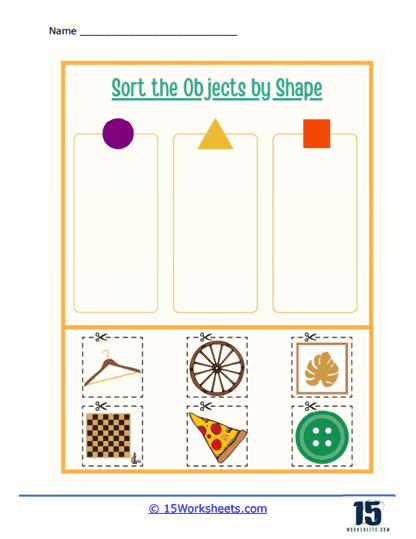 One common way to sort shapes on a worksheet is by the number of sides they have. For example, children may be asked to separate shapes with three sides (triangles) from shapes with four sides (squares, rectangles). This exercise helps them understand the concept of sides and recognize different shapes based on this characteristic.