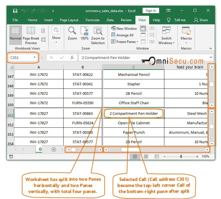 When working with split panes, it’s important to remember that any changes made to one pane will affect the others as well. For example, if you scroll to a different area in one pane, the other panes will also move accordingly. This can be a convenient way to keep track of multiple sections of data simultaneously.