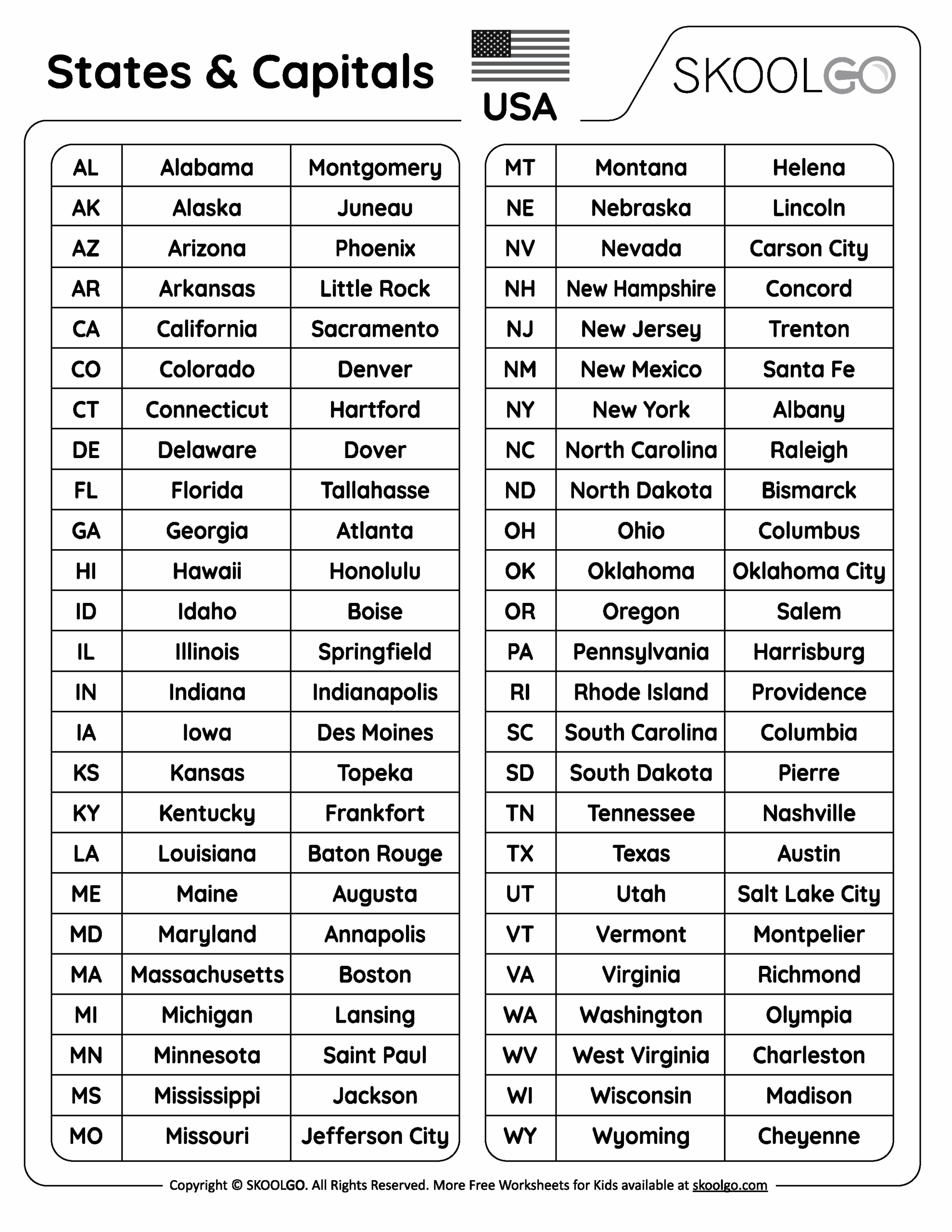 Learning the states and capitals of the United States is an important part of any geography curriculum. It helps students understand the layout of the country and how each state fits into the larger whole. One way to reinforce this knowledge is through the use of worksheets that challenge students to match states with their respective capitals.