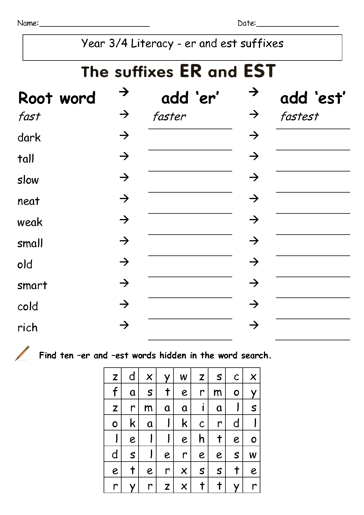 Suffix worksheets can also include word search puzzles, where students have to find words with a specific suffix hidden in a grid of letters. This activity not only helps students practice suffixes but also improves their spelling and vocabulary skills.